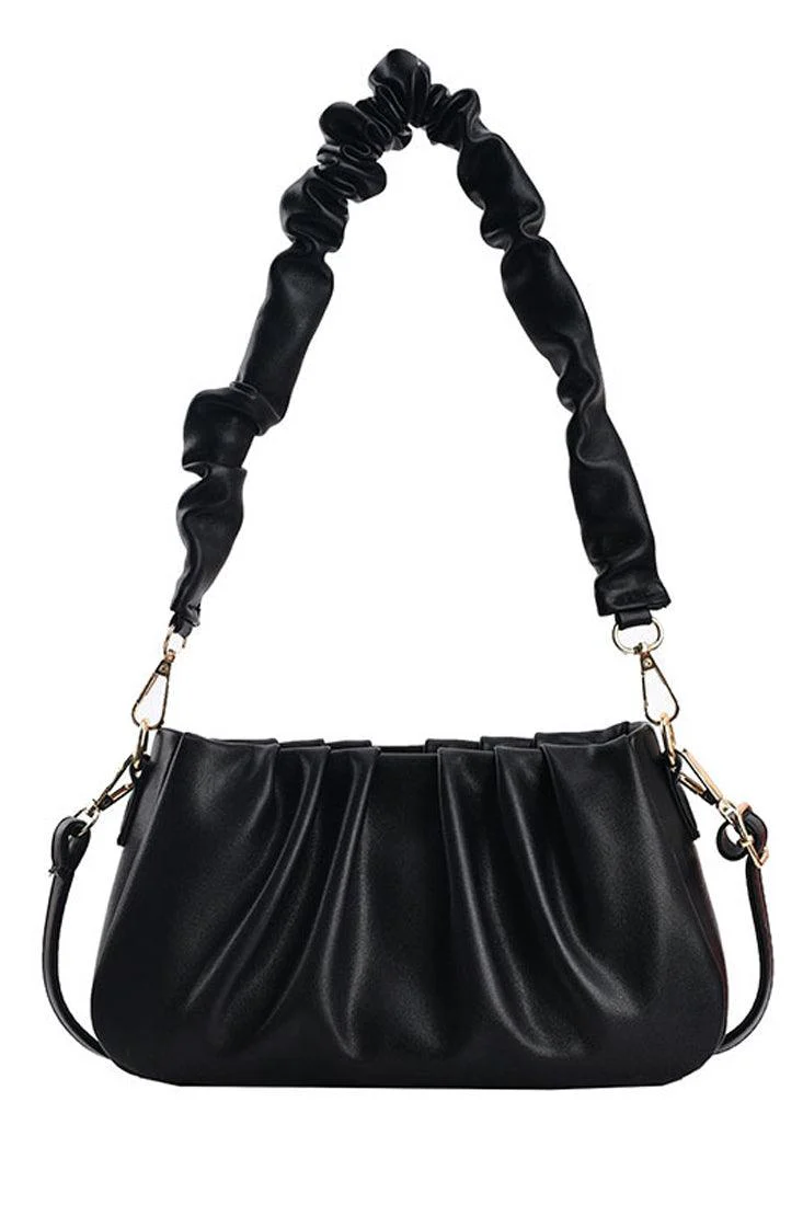 This black ruched crossbody purse is a chic and versatile accessory that complements both casual and dressy looks. Its soft ruched texture adds a trendy, tactile element, while the compact size makes it perfect for carrying essentials without bulk. The adjustable strap allows for comfortable wear across the body or on the shoulder, making it ideal for nights out, festivals, or everyday use. Elevate your outfit with this stylish and practical purse.