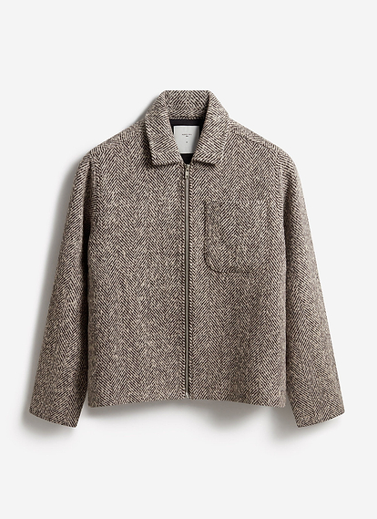The Herringbone Zip Jacket in wool features a timeless herringbone pattern with a practical zip closure. Made from premium wool, it combines classic style with modern functionality. This jacket is designed to be wind-ready and rainproof, with refined seams and a sharper cut, making it a reliable outer layer for transitional seasons while maintaining a smart, polished appearance.
