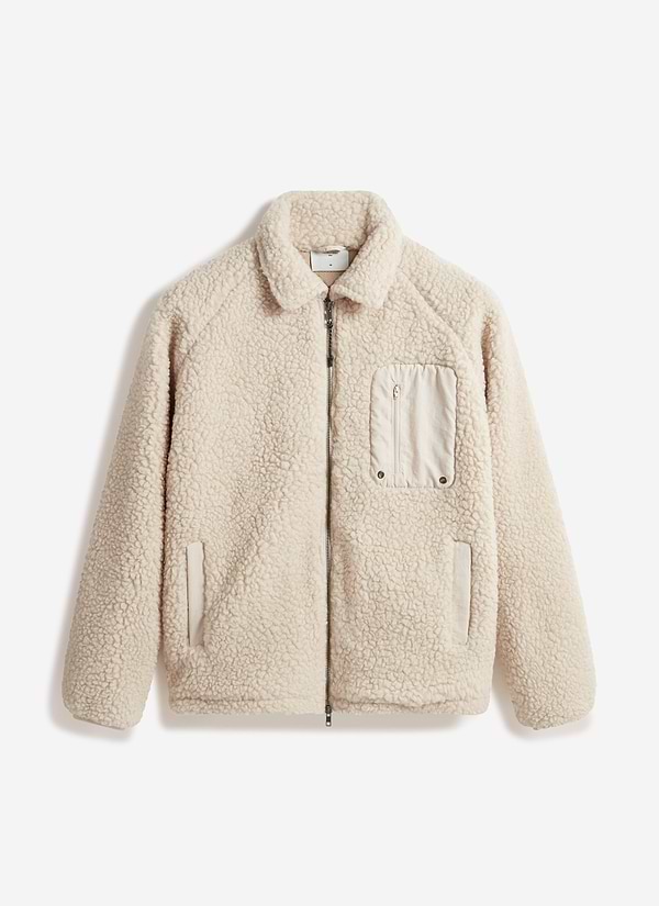 The Percival Full Zip Fleece Jacket in wool and ecru cream offers a refined take on the classic fleece. It features a structured shape with a smart collar and tonal trims, crafted from a premium wool blend. This jacket brings texture and subtle elegance to neutral outfits, making it perfect for city wear rather than just outdoor activities. It balances warmth and style effortlessly for a polished look.